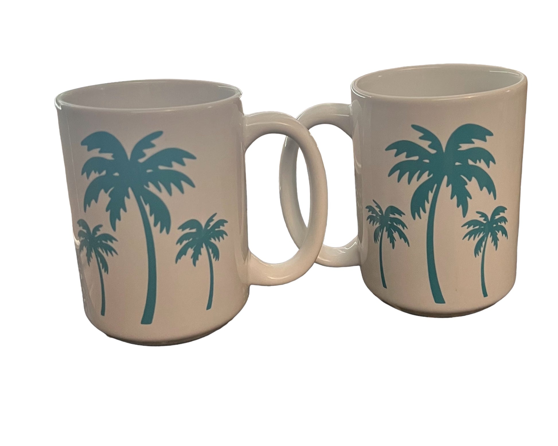 Set of Two 15 oz. Palm Trees Porcelain Mugs